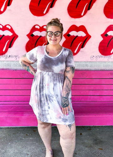 Gray Pink tie dye Jodifel Womens Dress, Large