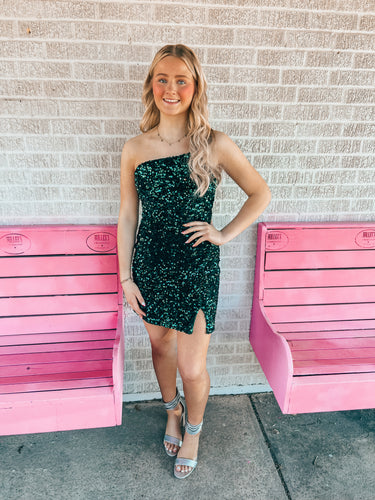 hunter green sequin midnight doll womens formal dress, Medium