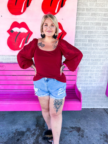 Maroon Embroidered shoulder top