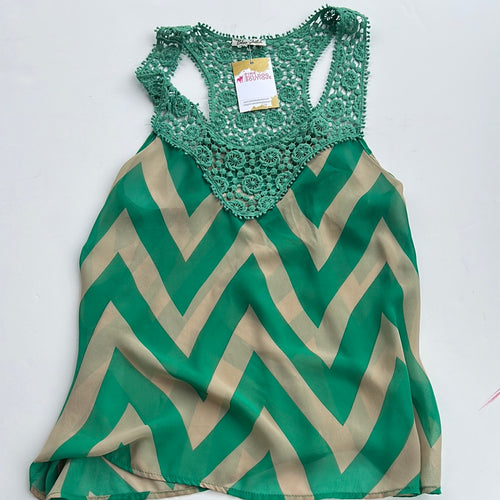 Mint Chevron Blue Stretch Womens Tanks, Medium