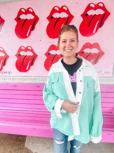 Mint/White Pol Womens Shacket, 3XL