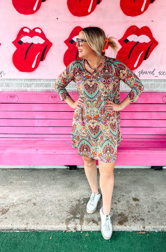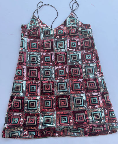 Multicolor Sequin Pink Bulldog Womens Dress, Small