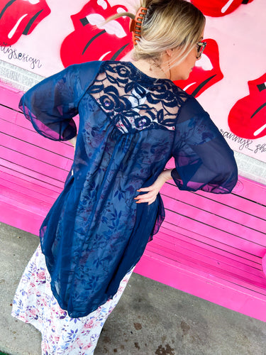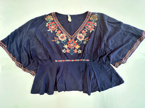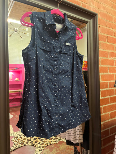 Navy Polka Dots Sweet Wander Womens Top, Large