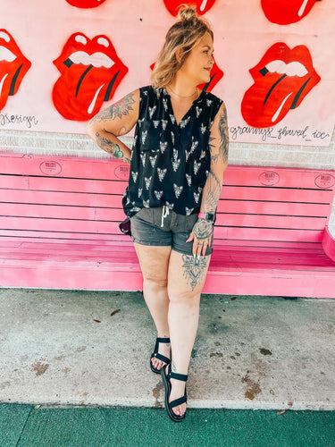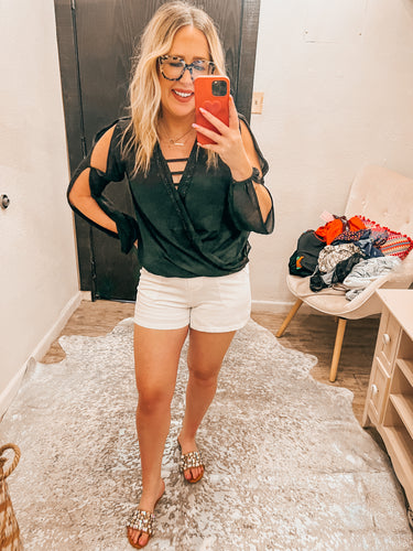 Black front tie bow top