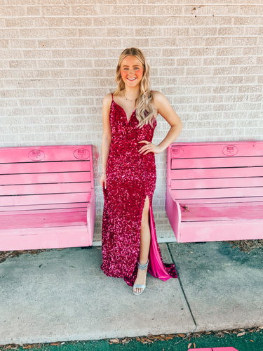 pink sequin cefian womens formal dress, Large