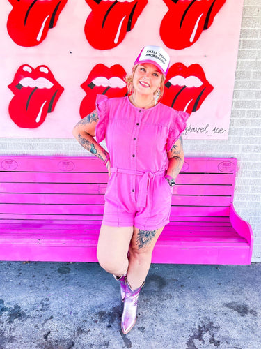 Pink ruffle sleeve romper