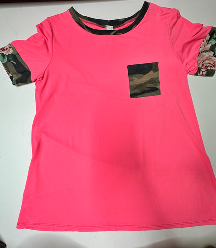 Pink/Camo Pink Bulldog Womens Top, Large