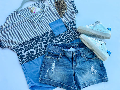 stripe with Leopard 7th Ray Womens Top, Medium