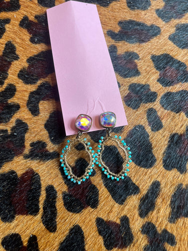 turquoise/bronze aztec Pink Bulldog Earrings, One Size