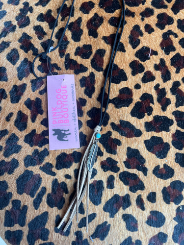 Turquoise/ feather Pink Bulldog Necklaces