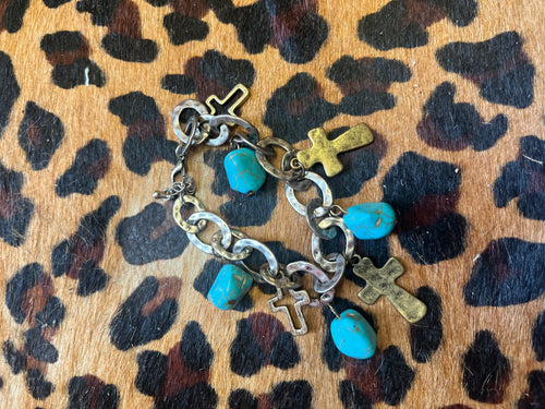 Turquoise/crystal Pink Bulldog jewelry