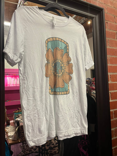 White Pink Bulldog Womens Graphic Tee, Small