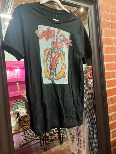 Black Pink Bulldog Womens Top/ lady luck, Small