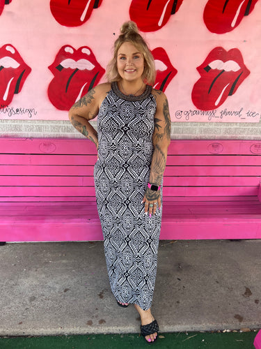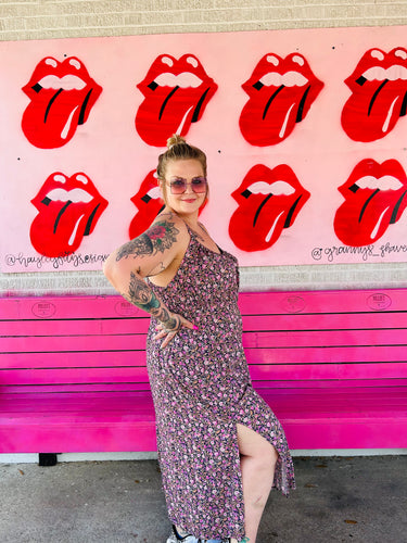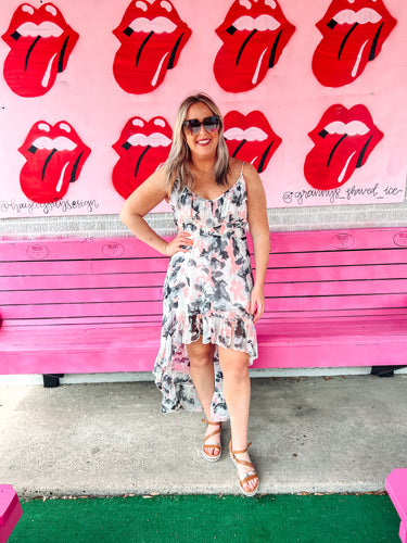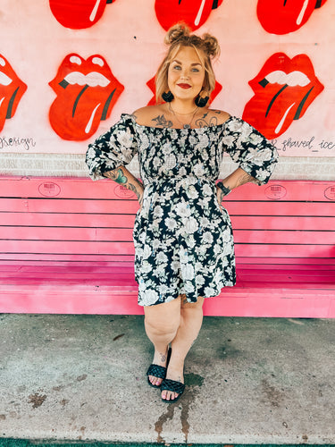 Black/Cream Floral Pink Bulldog Womens Dress, XL