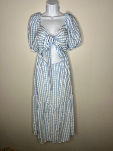 blue Checkered Cherry Cloth Womens Dress, Medium