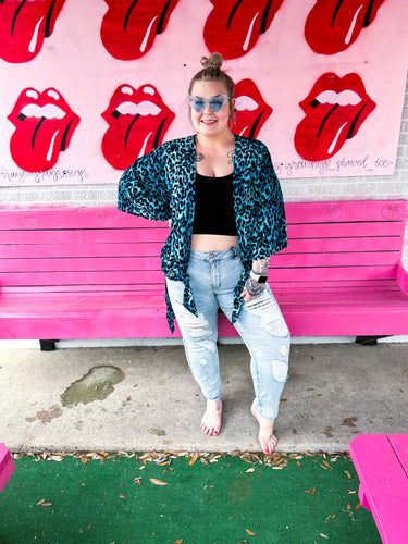 Blue Leopard Jessica Simpson Womens Top, Medium