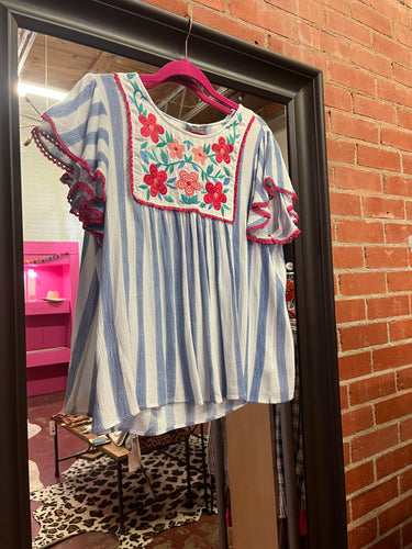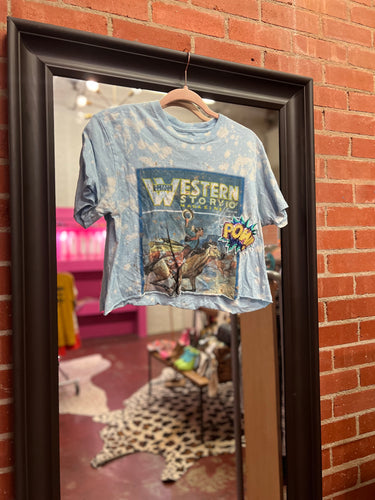 Blue Pink Bulldog Womens Graphic Tee, Medium