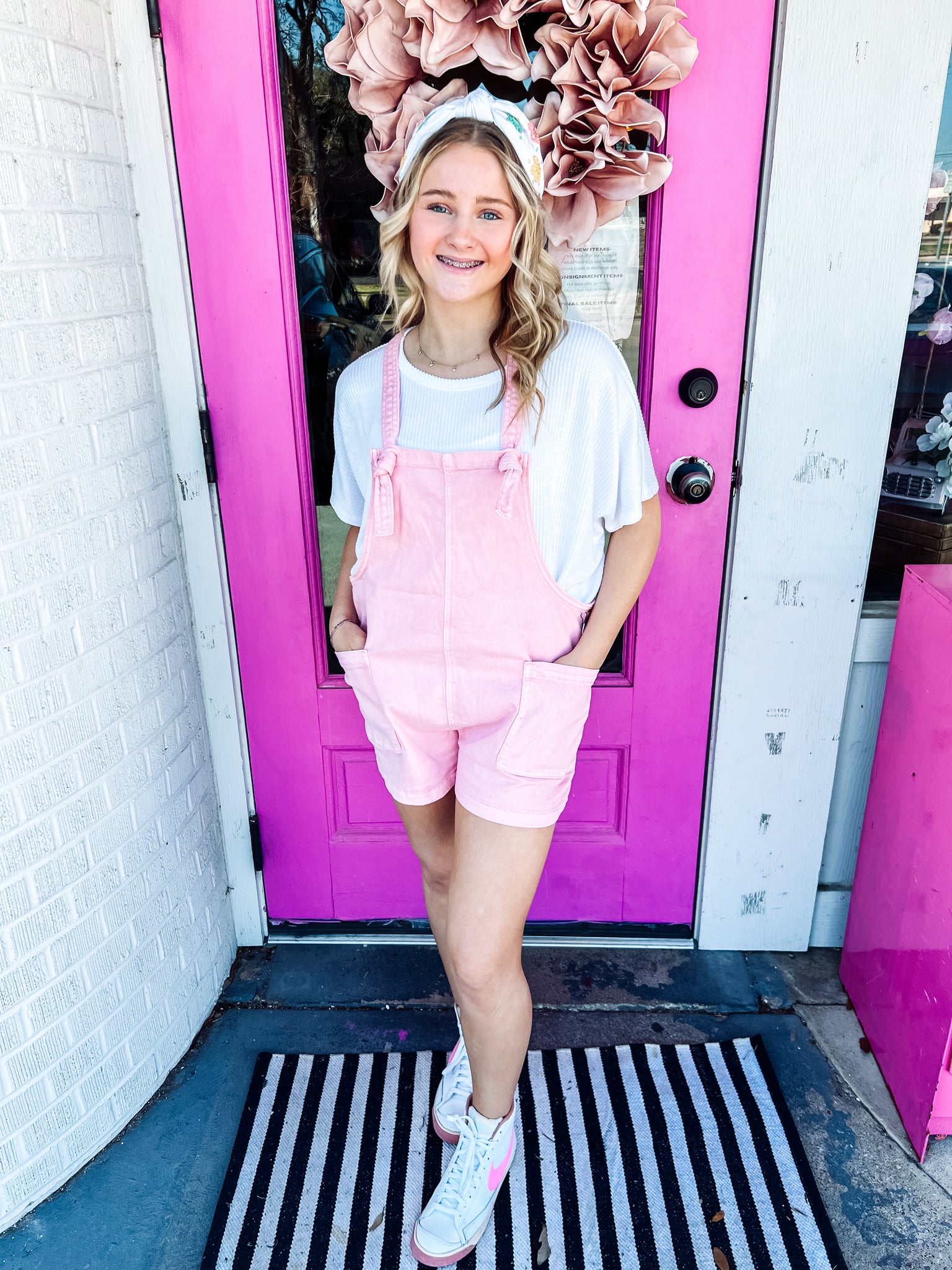 Pink Knot Strap Romper