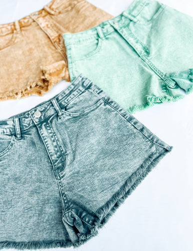 Acid Wash Color Denim Shorts