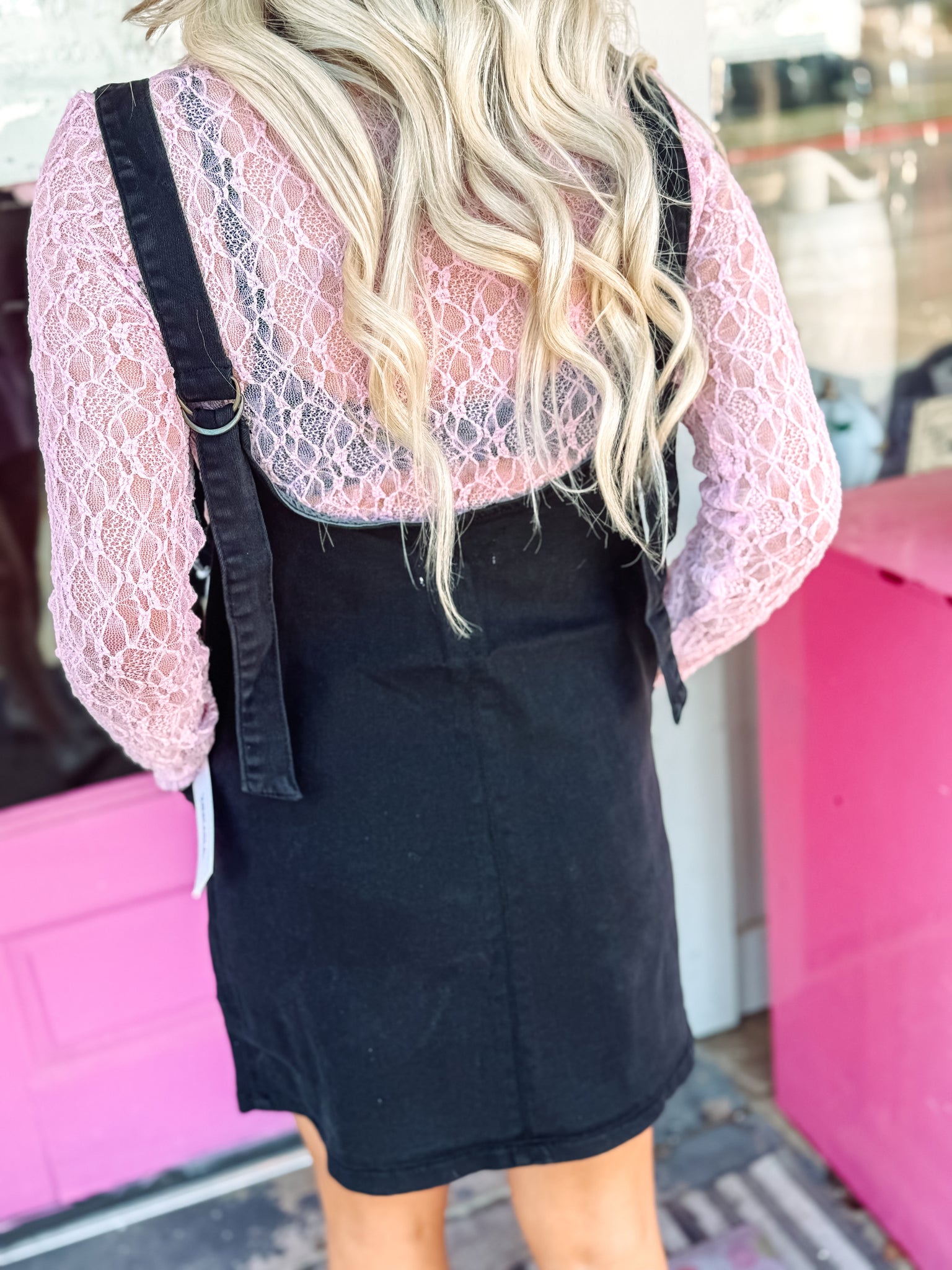 Black Washed Adjustable Strap Denim Overall Dress