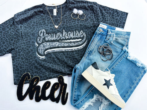 Black Leopard Powerhouse Faux Glitter Tee![]()  - Regular price