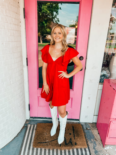 Poplin ruffle dress w/ bow tie back