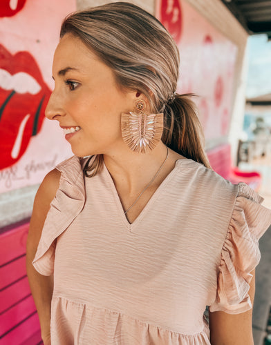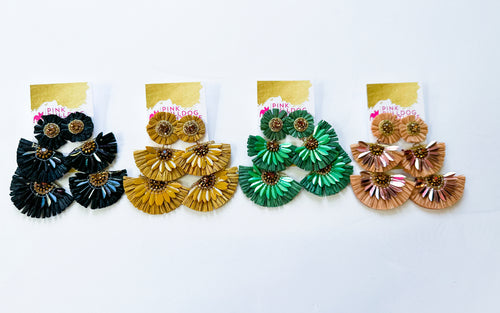 Raffia 3-tier beaded earrings
