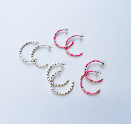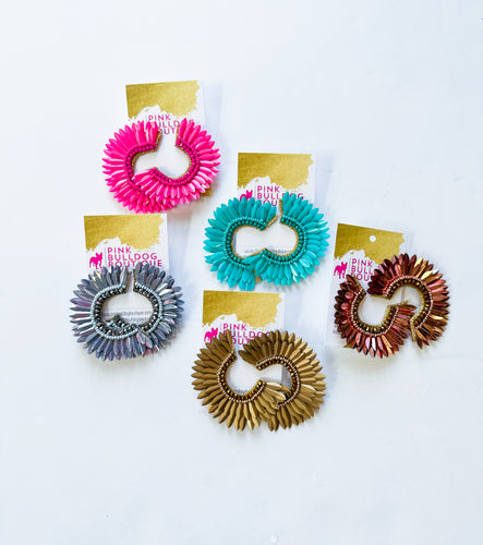 Raffia beaded half moon earrings