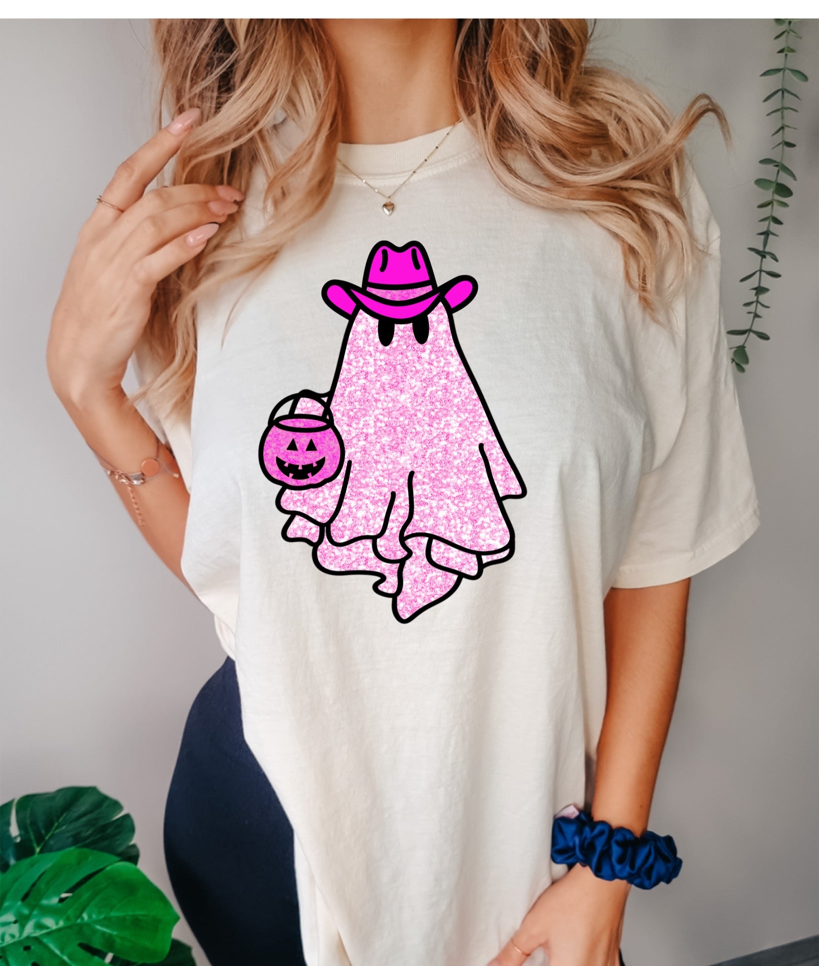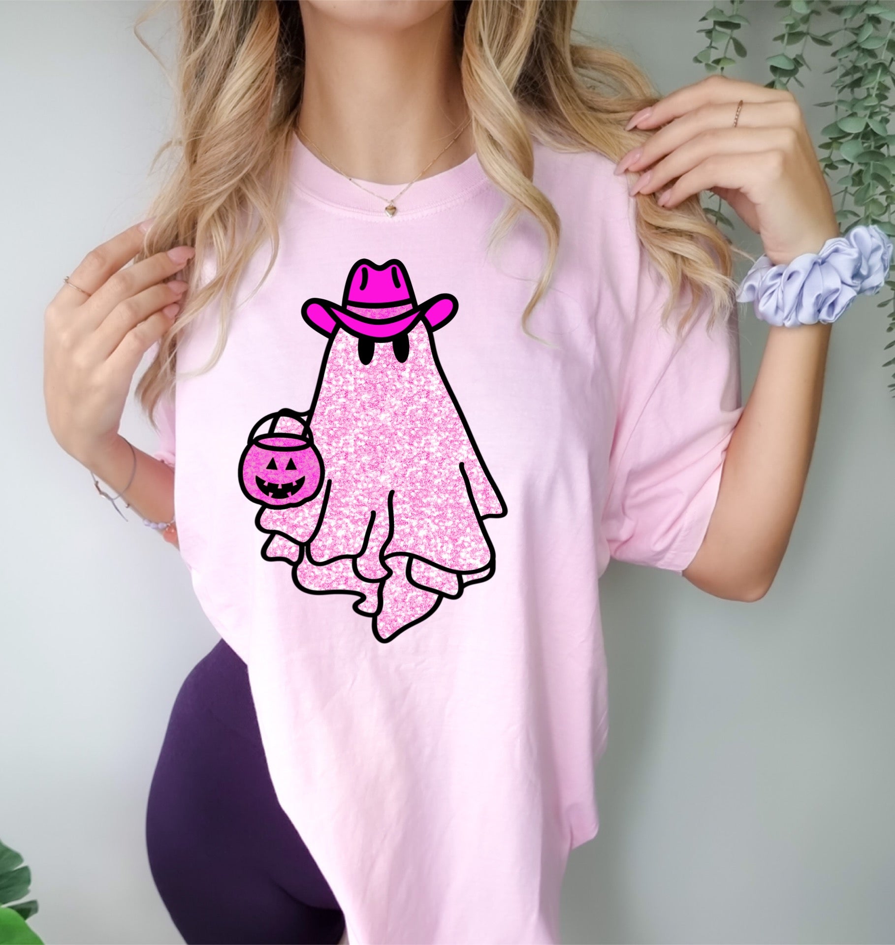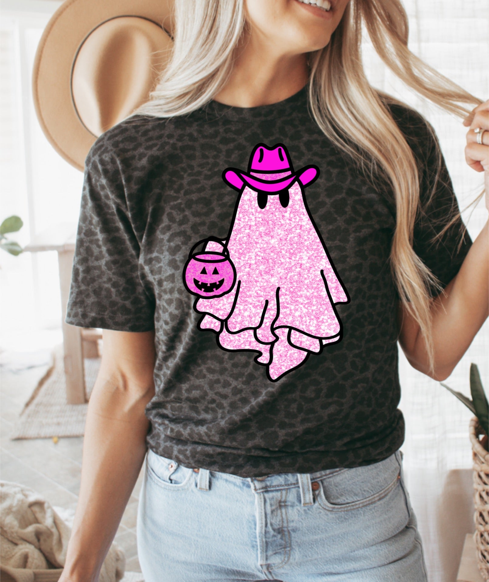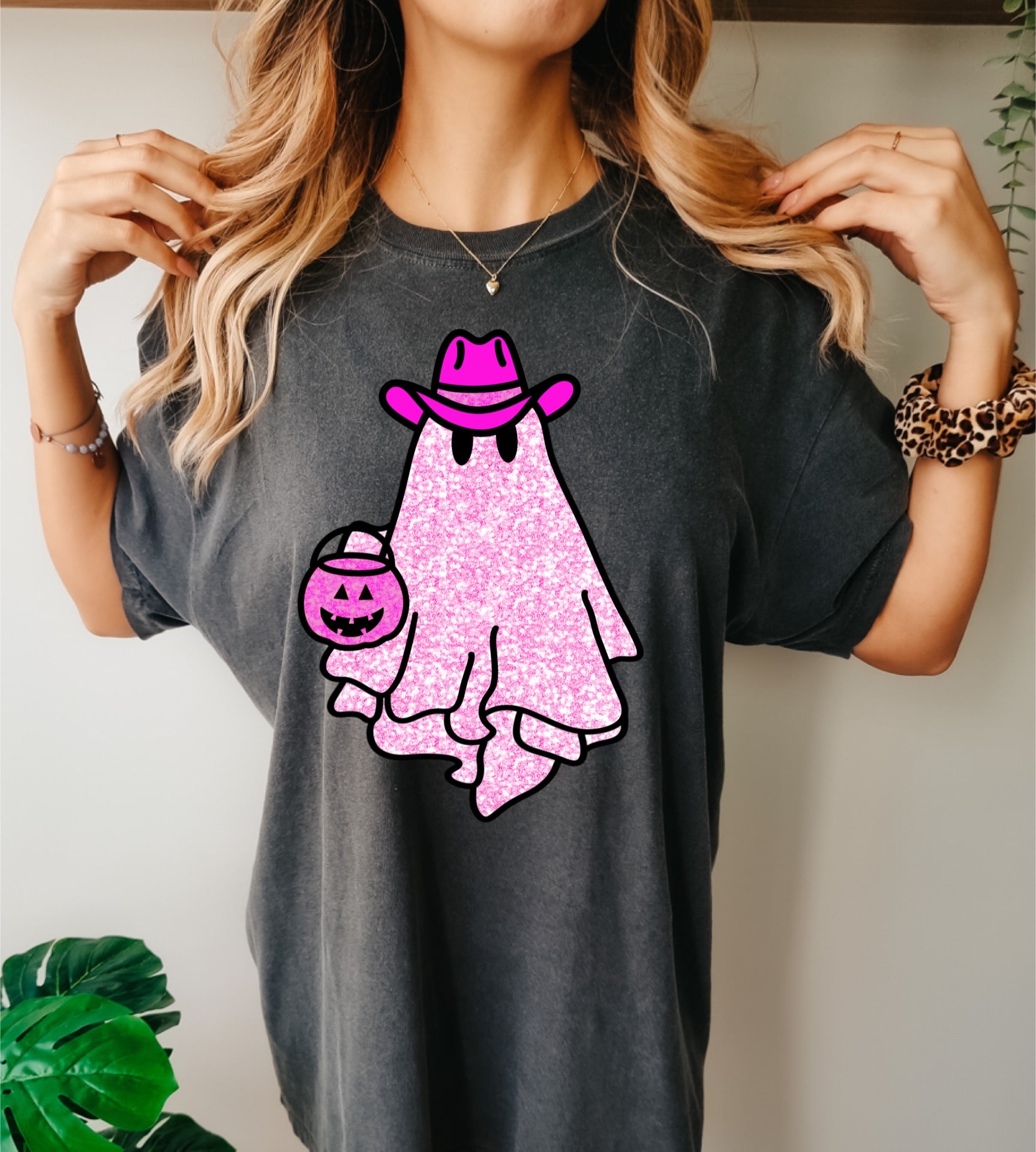 • Load image into Gallery viewer, Faux glitter cowboy ghost tee