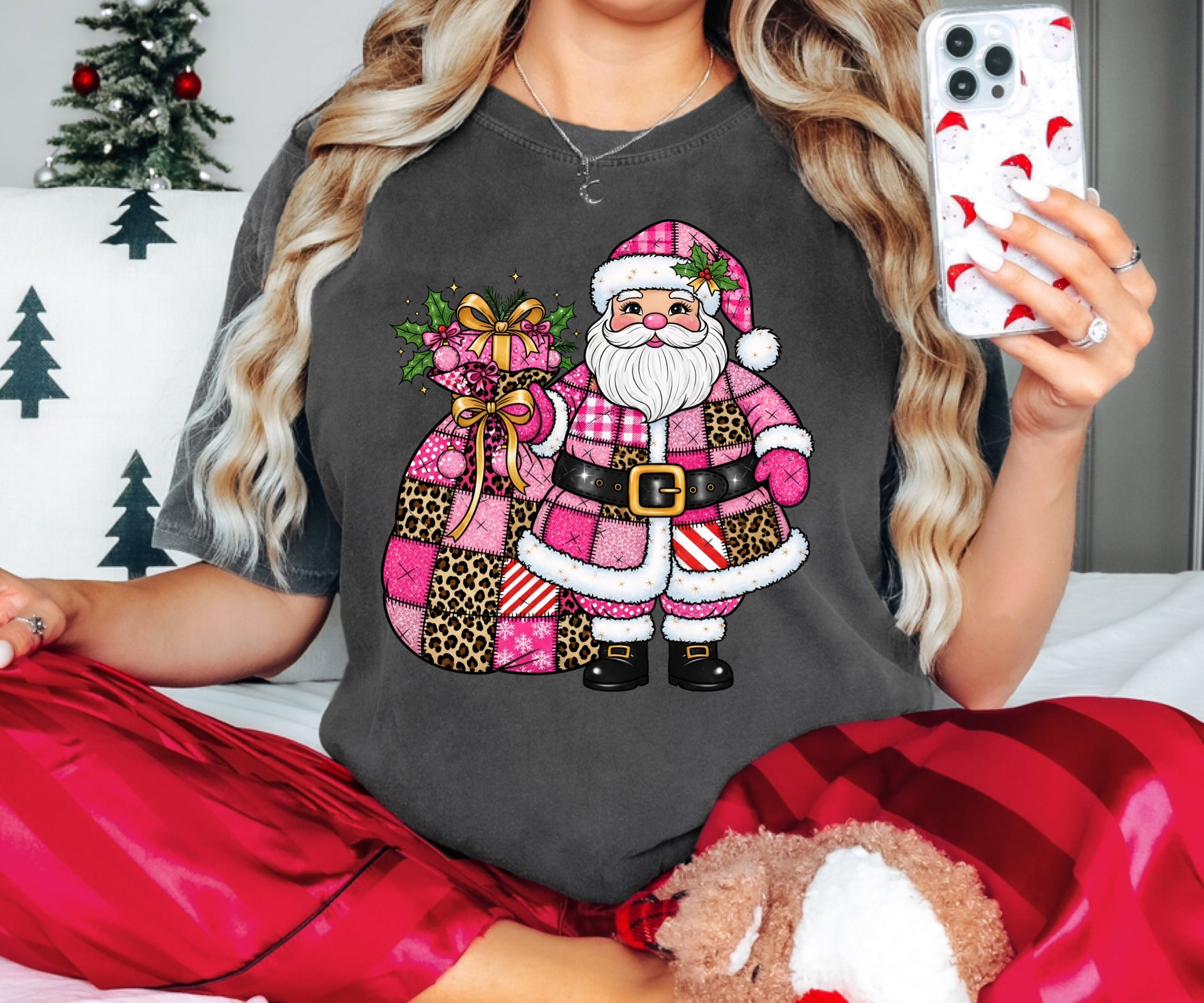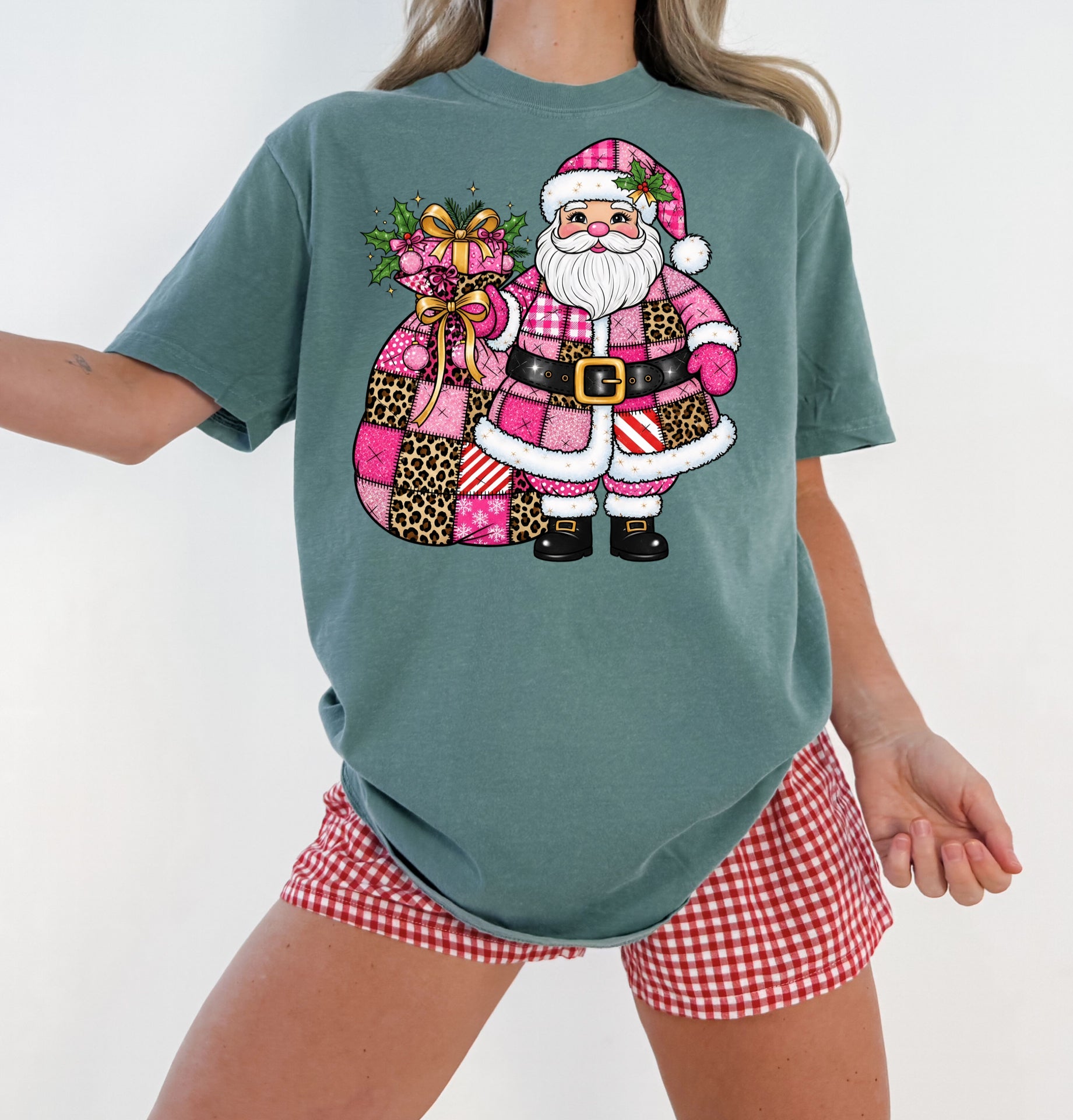 Pink leopard patchwork Santa