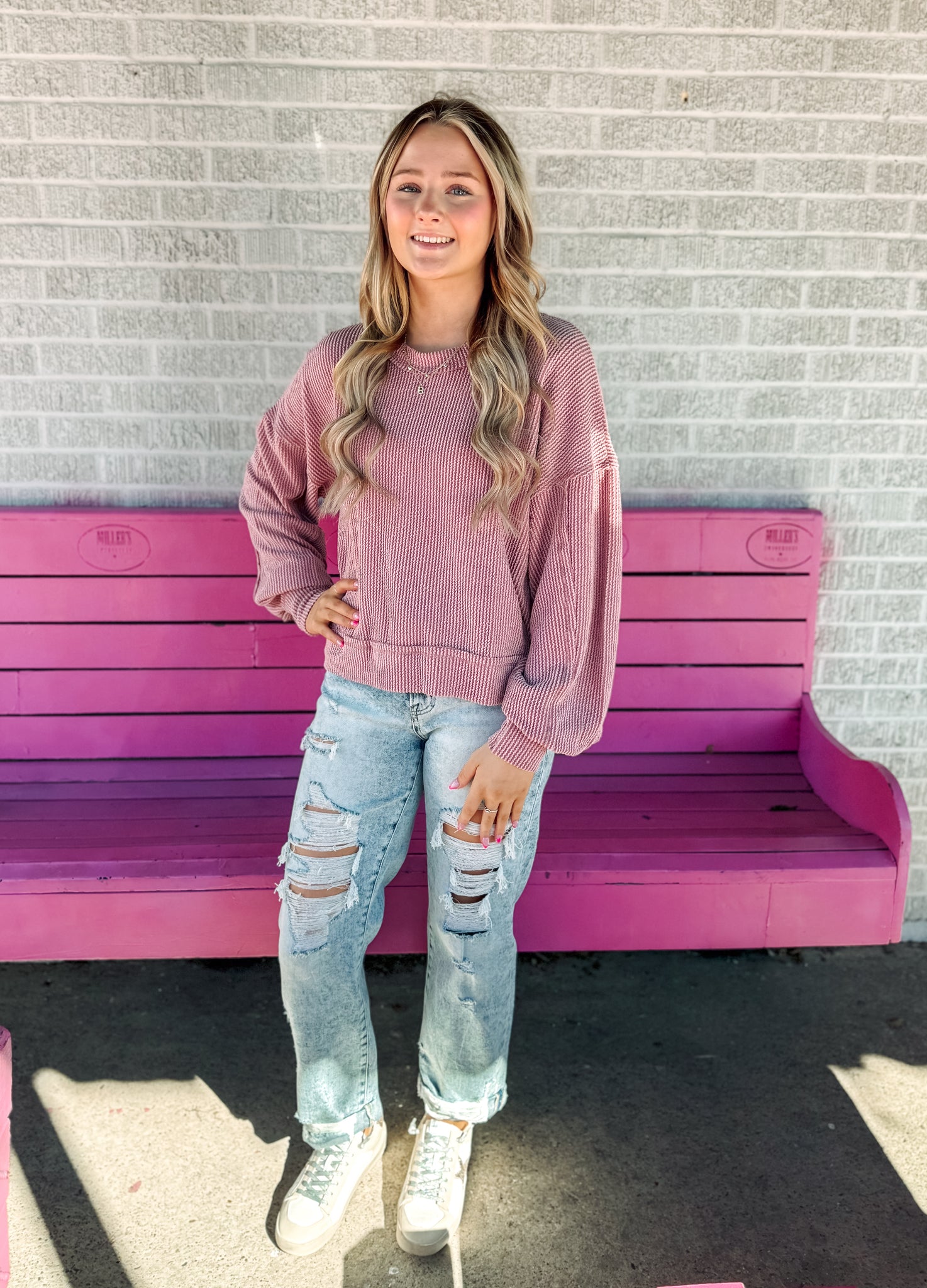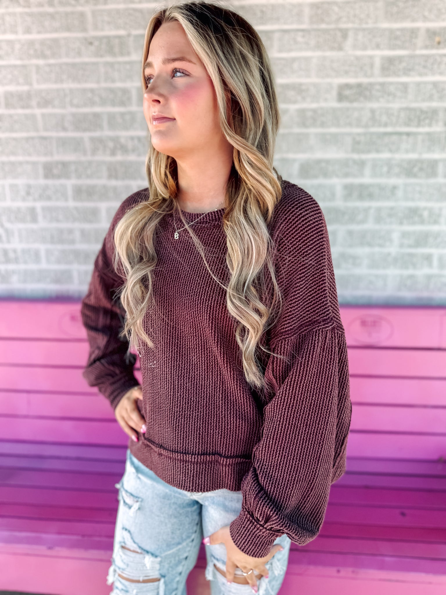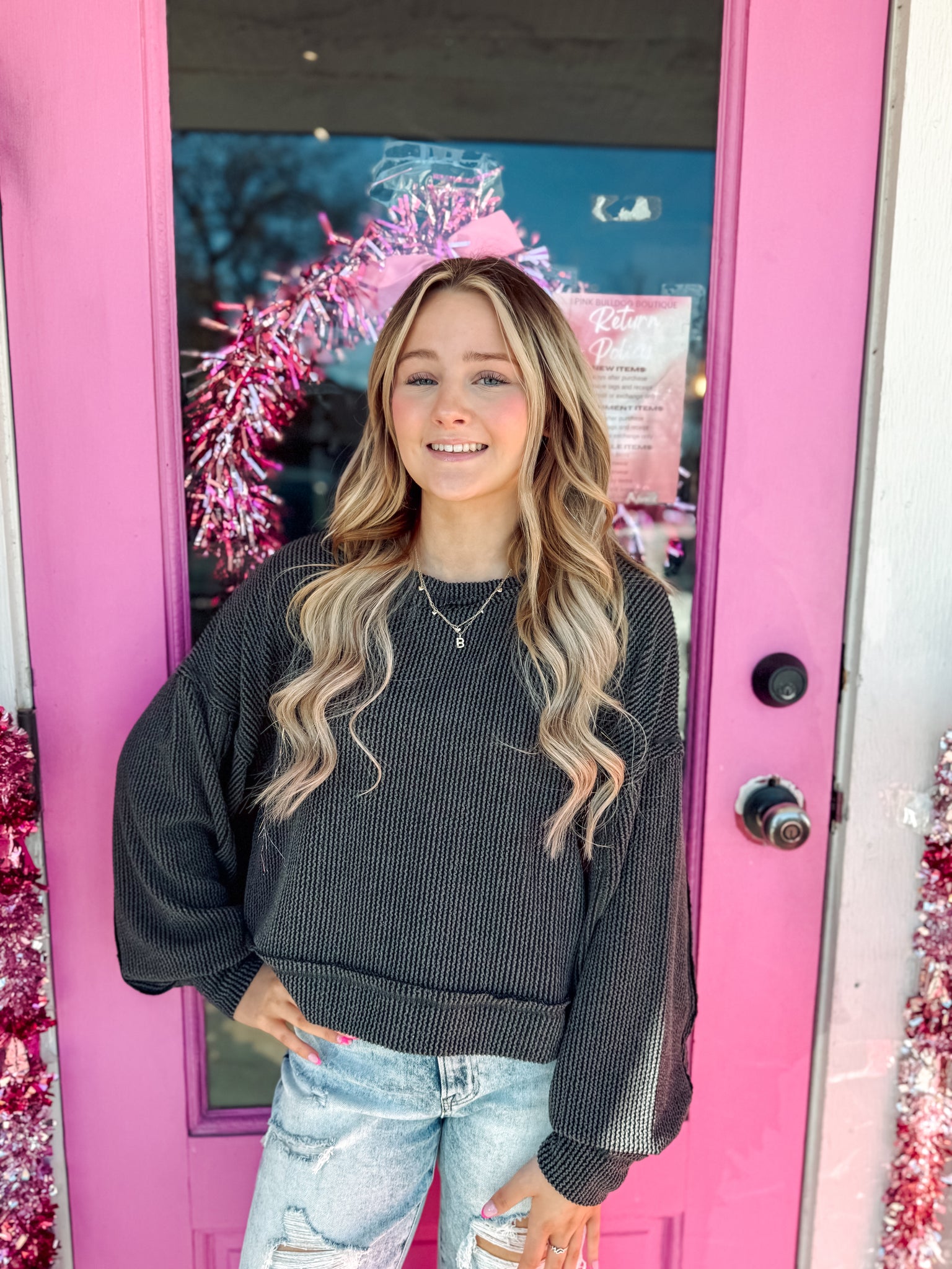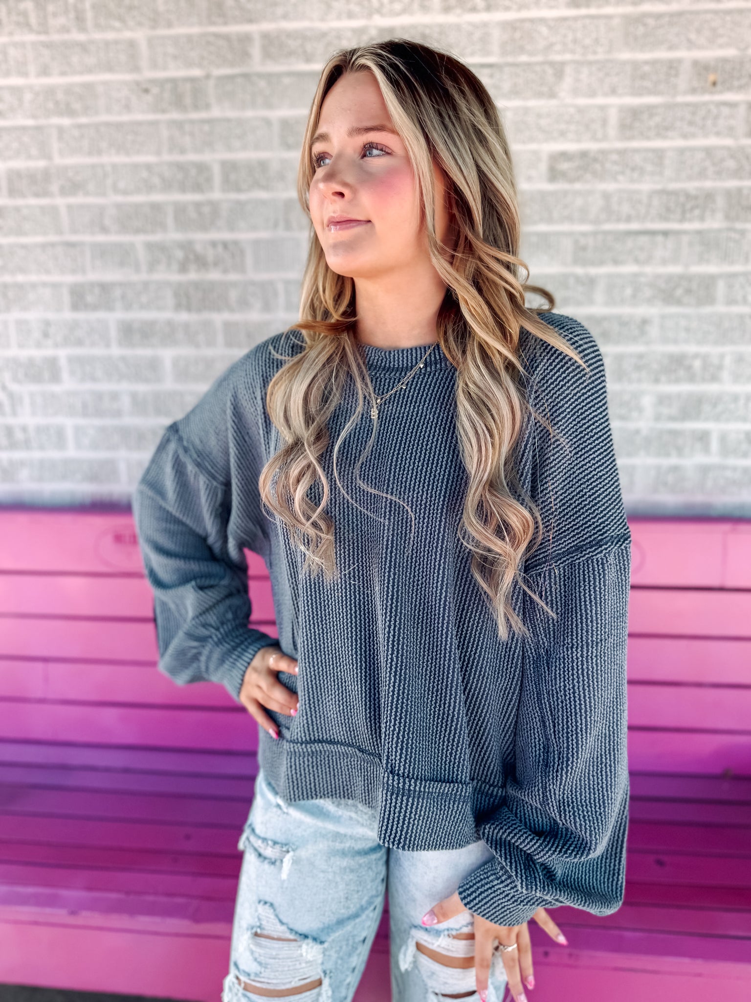 Corded oversized long sleeve top
