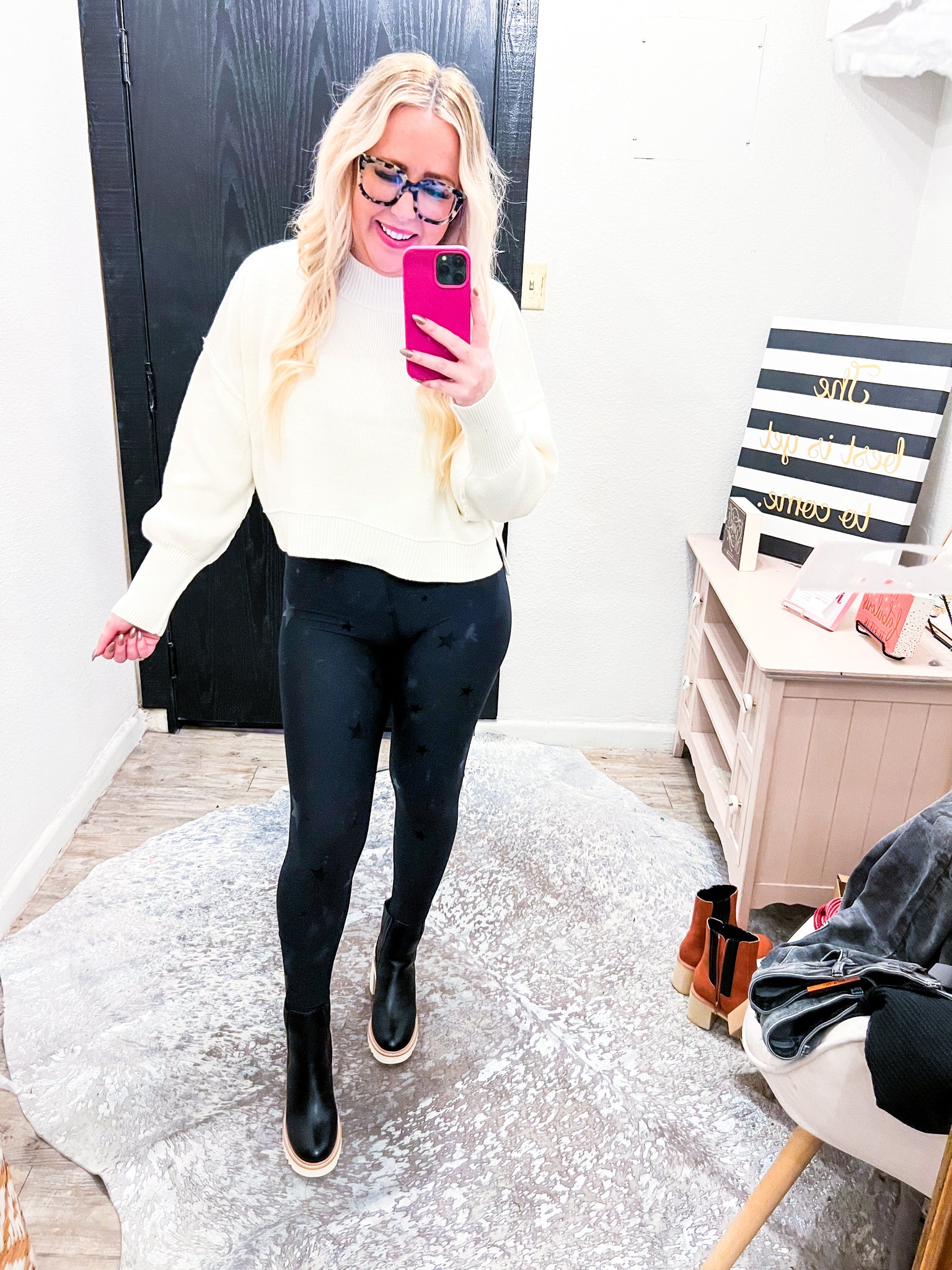 Mock neck crop sweater top