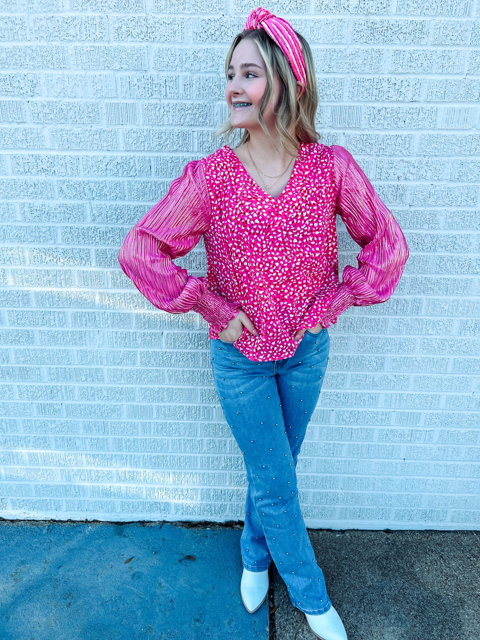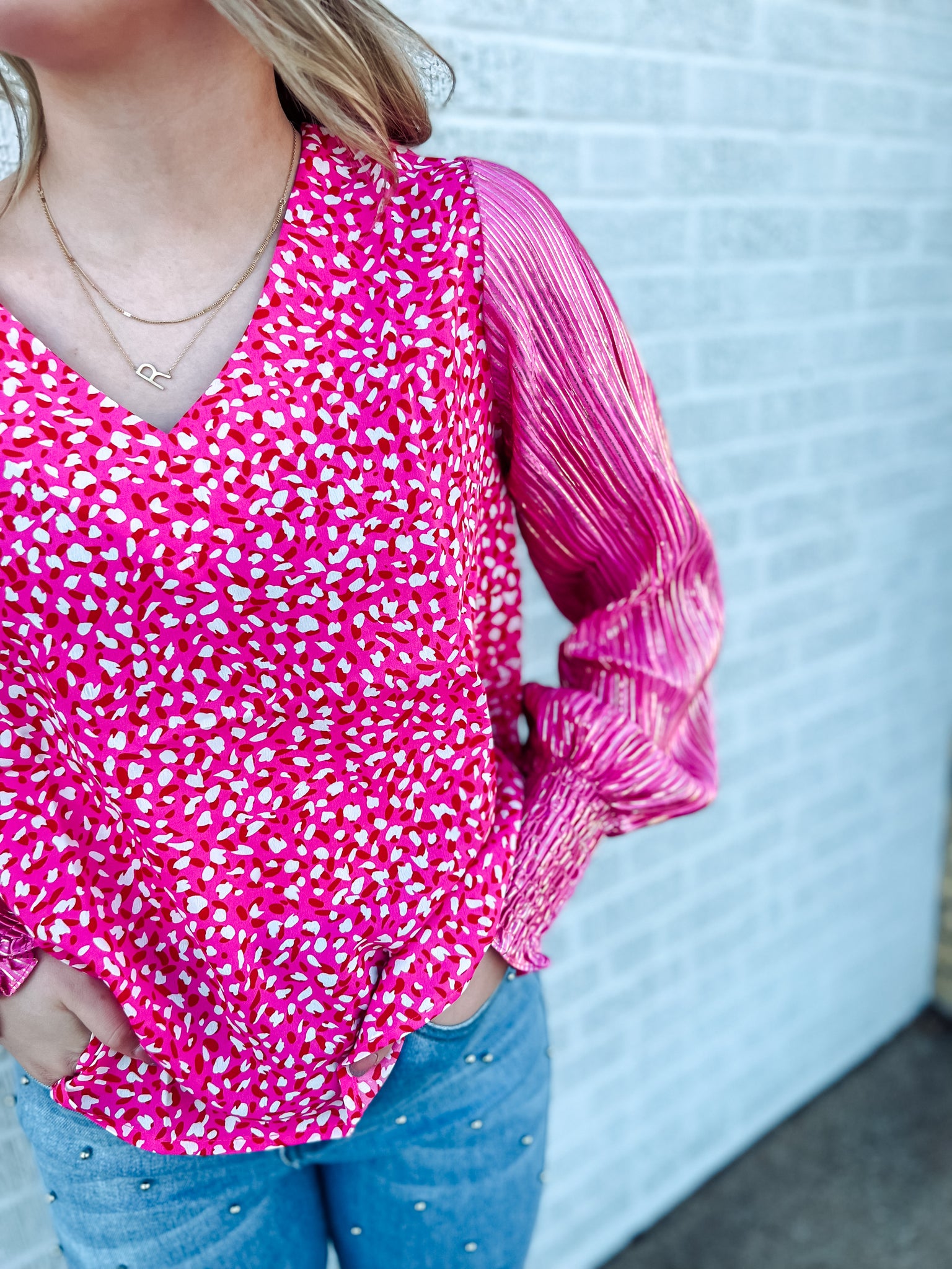 Such a fun leopard top with a touch of shimmer! True to size fit with an A-Line body style