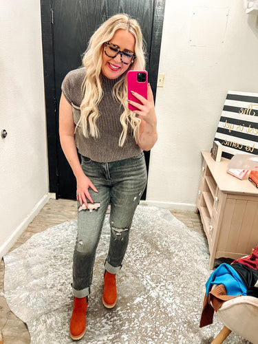 Mock neck short sleeve sweater top