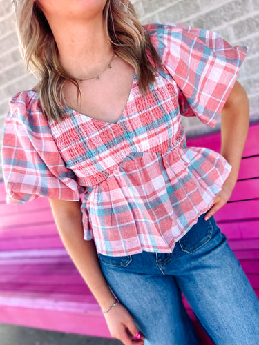 Spring plaid babydoll top