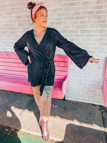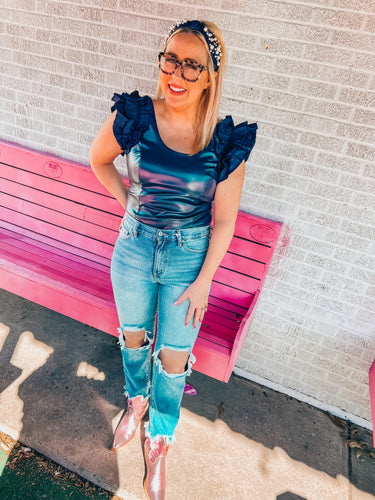 Navy Faux leather ruffle sleeve bodysuit