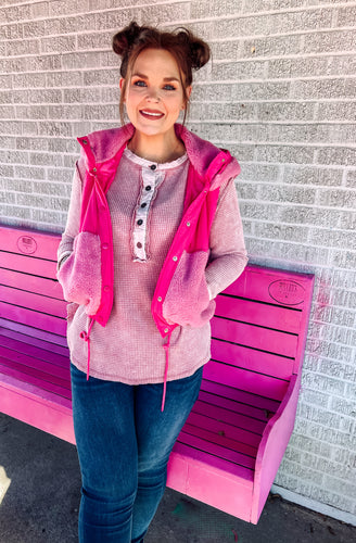Pink Colorblock Sherpa vest