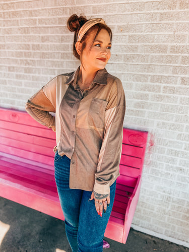 Colorblock suede button up