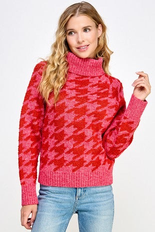 Pink and Red houndstooth sweater