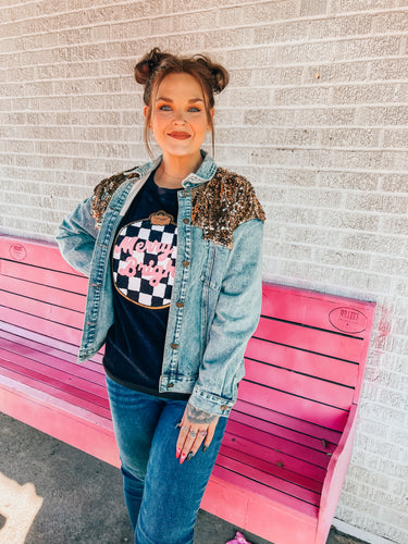 Gold sequin denim jacket