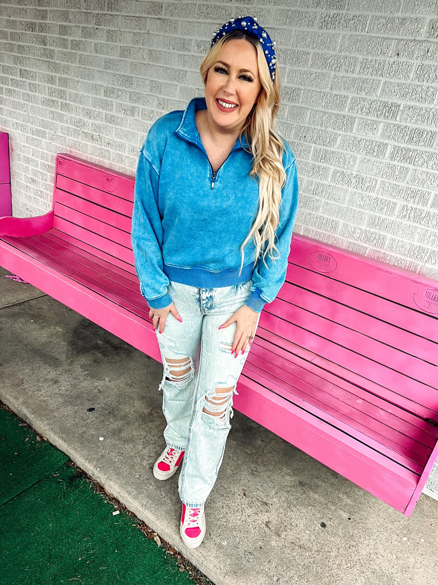 • Load image into Gallery viewer, 1/4 zip acid wash crop pullover