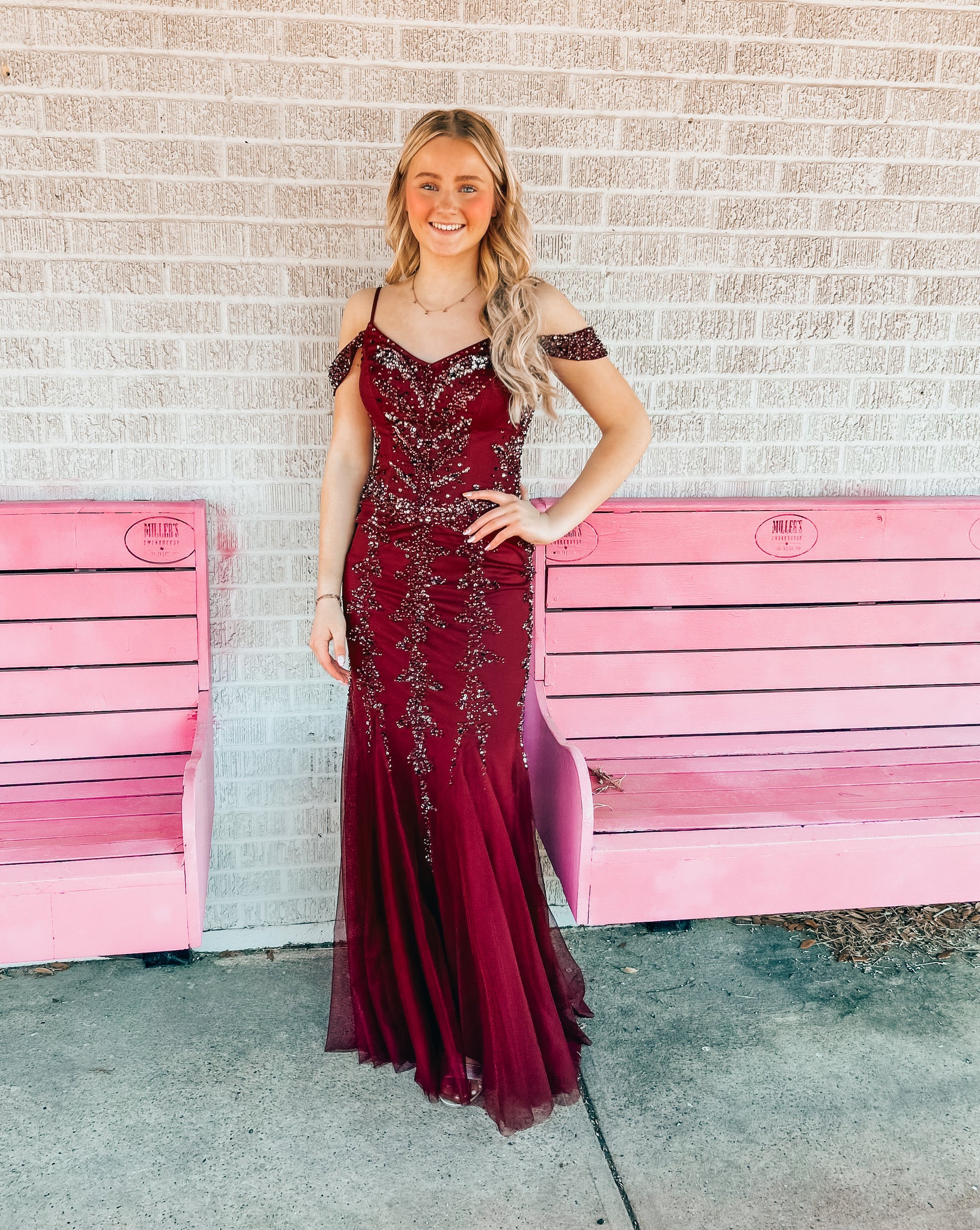 MAROON SEQUIN DAVIDS BRIDAL womens formal dress, 0