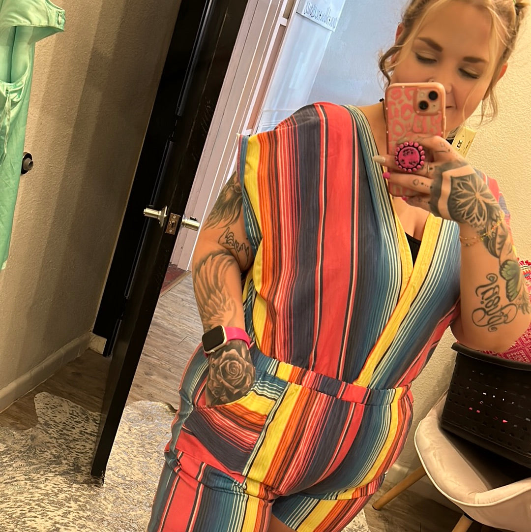 • Load image into Gallery viewer, multicolor stripes L&B Womens Rompers, 3XL