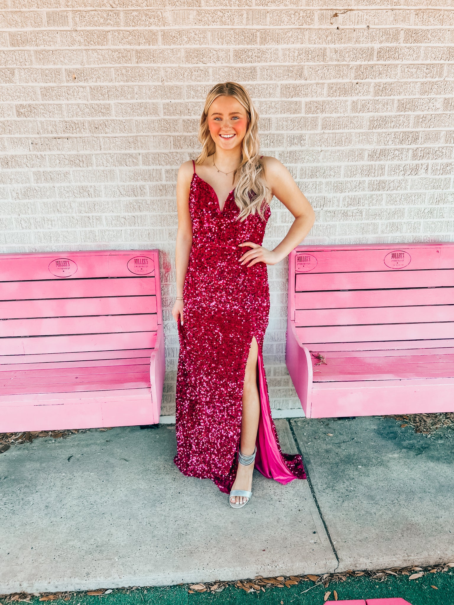 pink sequin cefian womens formal dress, Large